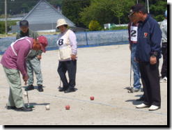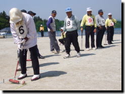 大会は、会員相互の交流と親睦を図り健康増進と明るい地域づくりに貢献することを目的に、10チームが2つのコートでリーグ戦を行い順位を決定する方式で、競技時間は30分で行われた。初戦の寺花Bと三沢の対戦は同点でゲート潜り競争を三度行うという白熱したゲームになるなど、各チームとも日頃の練習の成果を遺憾なく発揮して熱戦を繰り広げました。中には第一ゲートを終始潜らず苦戦を強いられる選手も見られ、周りから叱咤激励の声を掛けられていました。 試合の決果は、町下チームが優勝、前年度優勝中日向が準優勝、3位に三沢、寺花Bが敢闘賞に輝き、午後3時過ぎに表彰式が行われ、気温もゲームもヒートアップした大会を閉じました。