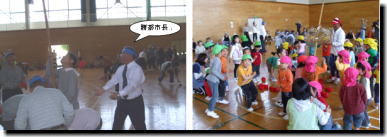 奥玉保育園児の一生懸命の演技や三沢、天ケ森、町下の各自治会女性部の踊り、当祝者の関根信一さん(80歳:三沢)赤木の子守唄などのアトラクションが会場を盛り上げ、お祝いに花を添えました。