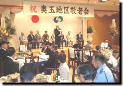 一関市奥玉地区敬老会が9月8日、マリアージュ(千厩字石堂)を会場に行われ、満80歳以上の当祝者348人中177人が出席、来賓や関係者を含め222人が会場を埋めました。今年の敬老者は昨年に比べて12人増えました。 主催者である勝部修市長が、「長寿には健康とりわけ笑顔が大事です。一関市を大きく発展させるため頑張ってまいります。」とあいさつ。80歳、85歳、米寿、卒寿の当祝者には関係機関から祝品が、敬老者全員にも祝品が送られ、当祝者を代表して村上年男さん(80歳:入山沢)が謝辞を述べました。
