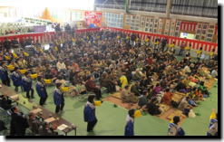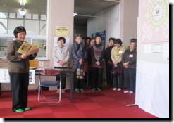 「みんなで紡ぐ きずな×きずな」をテーマに奥玉公民館(佐藤広徳館長) とせんまや里山塾自主講座奥玉パッチワーク学習会(千葉由子代表)が主催する「パッチワーク・キルトまつりインおくたま」が、3月24日〜25日の2日間、奥玉公民館を会場に開催され、両日で1,000名を超える入場がありました。開会セレモニーでは主催者を代表して奥玉パッチワーク学習会代表の千葉由子さんがあいさつ。(写真左上)「受講生自らが学習計画を立て、小物から大きな作品作り、目標としていたフレンドリーパッチワークが完成しました。作品を披露する場をと考え、今回のパッチワーク・キルトまつりを企画しました。展示する作品は、私たちの作品はもとより、一関市内の公民館を拠点として活動するグループの協力を得て、およそ千点の作品が集まり、両磐地域職業訓練センターパッチワーク教室が中心となり、展示作業を進めました。被災地の一日も早い復興を願いながら、新しい作品にも挑戦していきたい。ゆっくりご覧いただきたい。」と述べました。