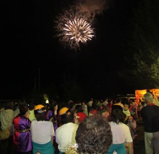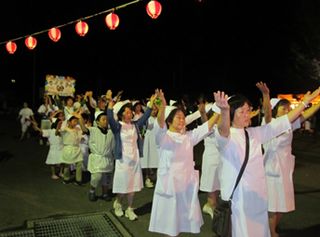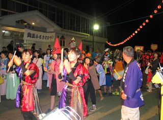 奥玉ふるさとまつりは、延期された8月17日に維新館前で開催され、花火の打ち上げや仮装盆踊りが盛大に行われました。仮装盆踊りの部では、奥玉音頭の踊りと仮装・参加人数アイデアなど審査の結果、大平自治会の「ハリーポッターと大平の子供達」。80名が参加(写真左上)。2位は寺崎前自治会の「ひまわり祭り」、3位が防犯をテーマに「へんなおじさん!には気をつけよう?」64名。敢闘賞は町下自治会の「アナと雪の女王」が表彰されました。 「花ことあんこ」(三沢自治会=写真右上)「花子と宝築のアン」(宝築自治会)看護師の服装で「検診を受けましょう」(天ケ森自治会=写真左下)「少子化対策、はなぬきは子沢山」(花貫自治会)アイデアあふれる仮装が目をひきました。 花火も久しぶりのスターマインが2本打ち上げられ、140発が夏の夜に輝きました。(写真右下)