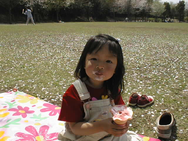 大好きなアイスクリームを食べる千佳。