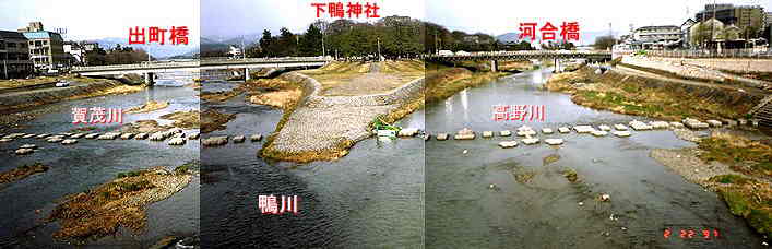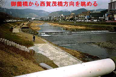 ・水源は、桟敷ヶ嶽と貴船山。全長は、約23q。 ・御薗橋の近くに上賀茂神社、北山大橋の近くに府立植物園、葵橋の近くに下鴨神社がある。 ・外国人夫婦、老夫婦のハイク、犬を連れて散歩、楽器の演奏、一人でジョギング、グループ