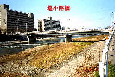 塩小路橋・賀茂川は、下鴨で高野川と合流する。この地点から下流は、鴨川と呼ばれている。 ・三条大橋から七条大橋まで、京都府により[花の回廊](鴨川の川面を眺めながら
