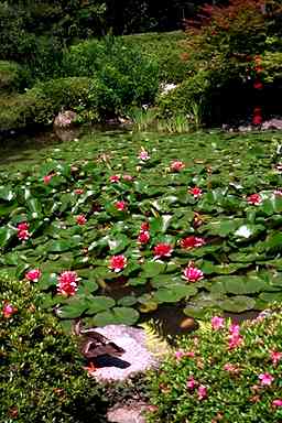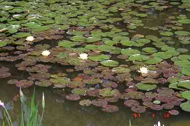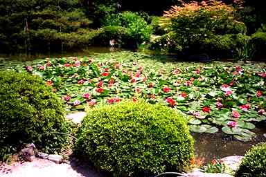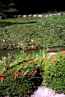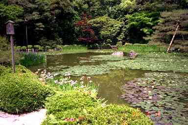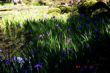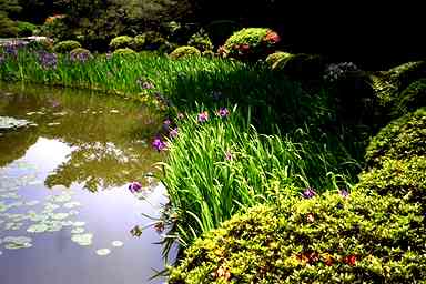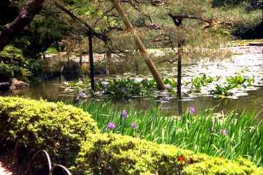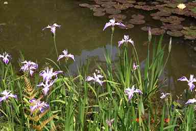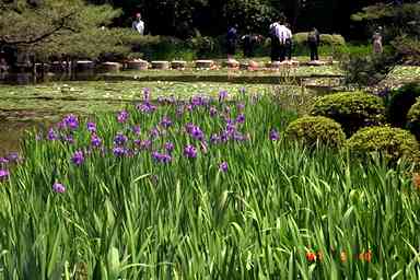 西神苑の池畔には、ハナショウブ、カキツバタ、スイレンなどが咲いている。