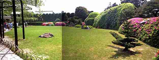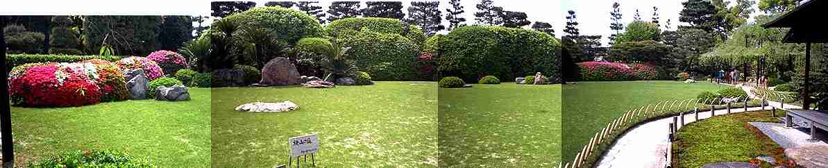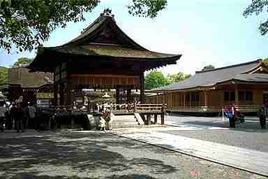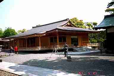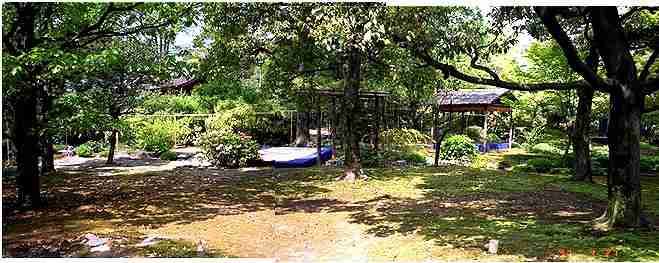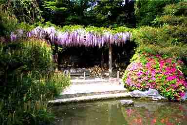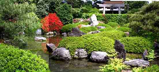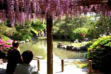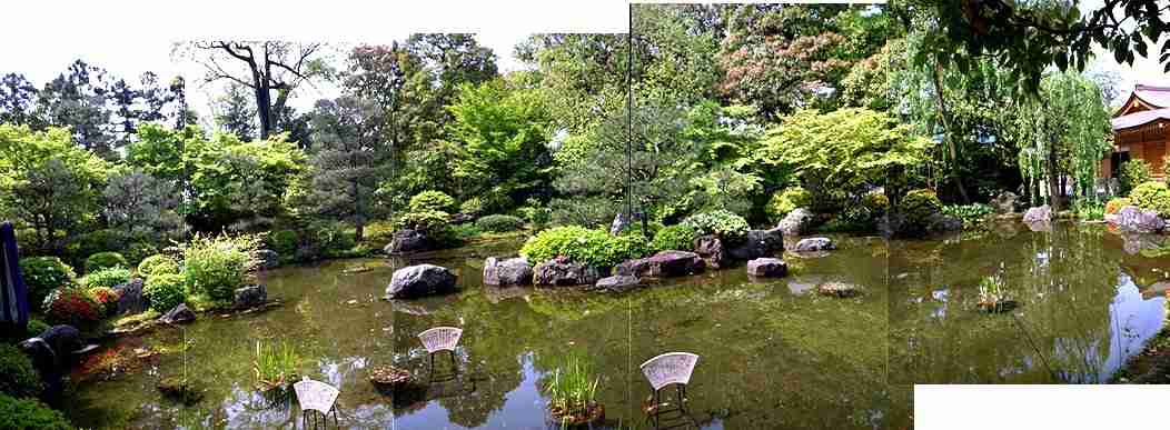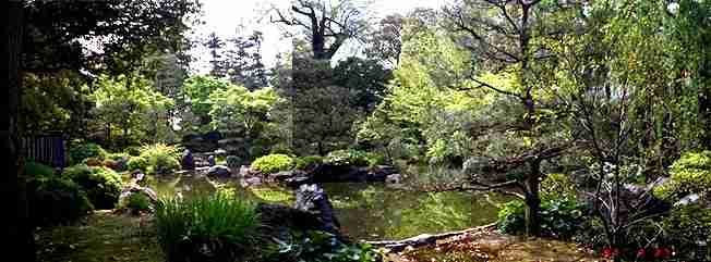 庭園は神苑と呼ばれ、「源氏物語”花”の庭」になっている。 「平安の庭」、「室町の庭」、「桃山の庭」などがある。