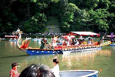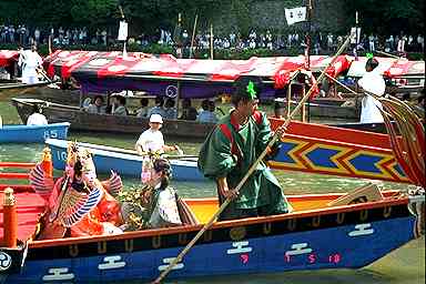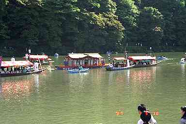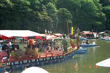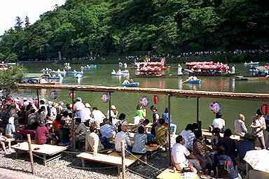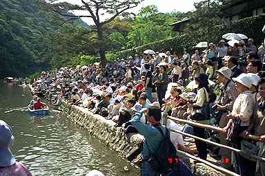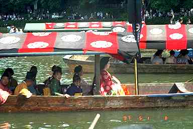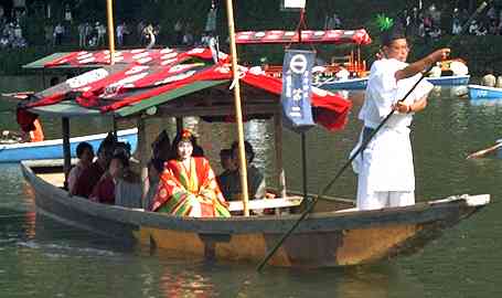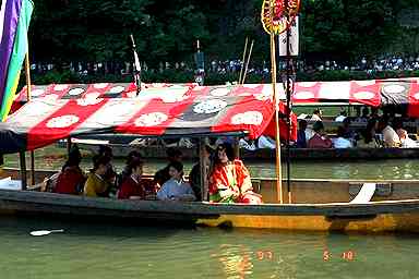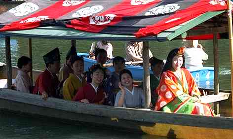 大堰川(嵐山)で行われる車折神社の祭礼。舞や音楽を奉納する竜頭船、詩歌船、小唄船などが、大宮人の優雅が船遊びを再現する。この祭礼に向けて「平成の姫君」(十二単姿)の公募が数カ月前から行われた。