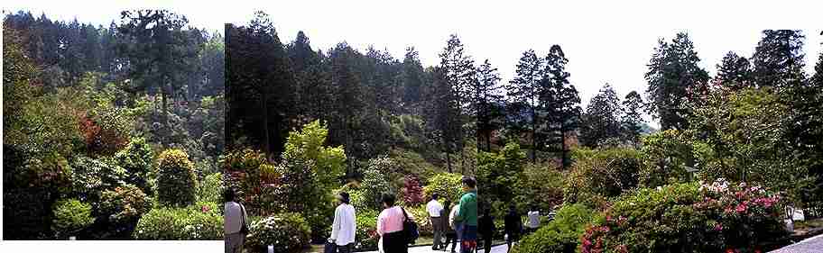 ツツジが見ごろとの報に接し、初めて訪ねた。境内の広さと変化に富んだ眺めに驚いた。そこには、池泉庭園、枯山水庭園、山の斜面が一体となり、スケールの大きな絵巻物があった。