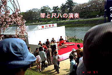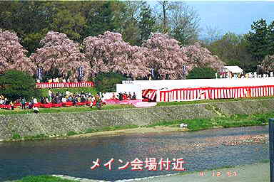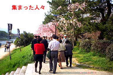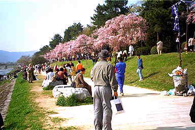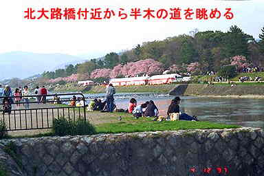 (たまたま恒例のイベント「鴨川茶店」が行われていて、多くの行楽客で賑わっていた。)
