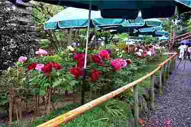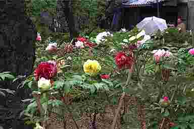 ボタンの花が境内にあふれるほど咲いていた。数少ない黄色いボタンに人気集中。 近くのタケノコ工場からの香りも忘れられない。