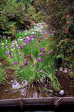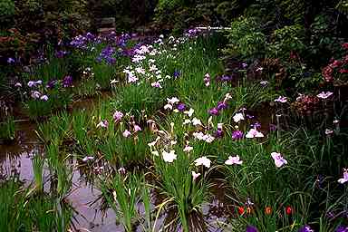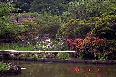神苑は、苑池を中心とした回遊式庭園。カキツバタで有名だが、訪れたときは、花菖蒲とアジサイがいっぱい咲いていた。池は、桂川の溢水によってできたといわれている。