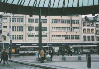 ストラスブールのプランタンです。(銀座にもありますよね) 遠目にはデパートとは思えないシンプルな造りの建物です。 ところで、ここのトイレはなかなかの物でした。 男女兼用、しかも男用(小)のトイレは無くすべて個室形式。 男女とも入り乱れてじっと待つしか無いんです。 しかも少ない個室の一つには鍵が掛かっており使えないなんて、ヒドイ!! 日本では考えられない事ですが、何と鍵の掛かっているのは従業員用だそうで、権利が厳しく守られているとの事。 近くのミュゼ(美術館)でも同じ経験をしましたのでストラスブールでは常識のようです。