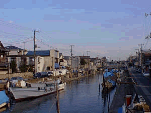 山本周五郎のあおべか物語で有名な浦安の境川です。 市民と漁業のふれあう街の雰囲気がお判り頂けますか。 もう少し下流に行くとハゼが釣れるスポットがあります。 釣り糸を垂れているカップルもいます。
