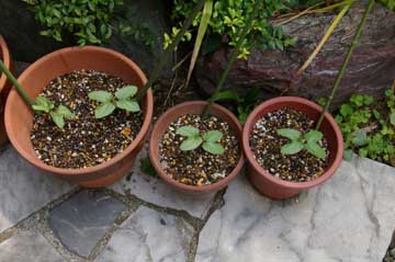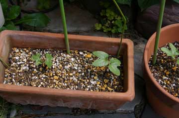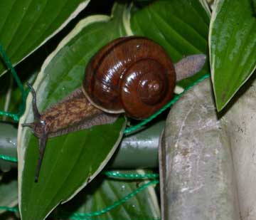 早朝にアサガオの花壇を這って、日が上がってくると草の陰に逃げ込む