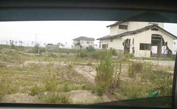 少し肌寒い風の中、海から、2kmまで津波が押し寄せた風景を見る