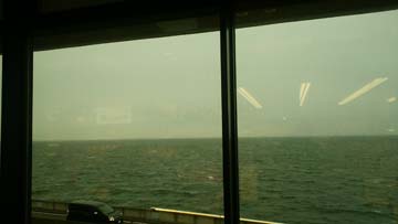 窓の外からみる海ほたるの風景は大荒れ