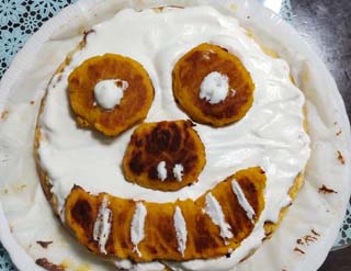 生クリームでコーティングした上に配置してジャックオーランタン