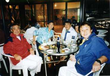パーティでは、司会の宮口選手の仕切のもと、稲田選手ひきいるギターバンドDREAM6が生演奏をきかせ、宮口選手経営の塾の美人の事務員さん(含元事務員さん)が花を添え、小林会長や大東アンパイヤの熱唱、Jrの合唱、BSC井上校長のローストビーフやBSCヨットクラブからのトッパーケーキ、多数の景品の抽選等々トッパー全日本史上かってない盛り上がりを見せました。(私もこの時点で4位ですから気分良かったです。)