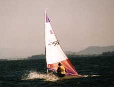 第1レースは、前半風があり、だんだんなくなり、時々吹く、しかも最後は右に回るという難しい風でした。私も1上で5番くらいだったのですが、だんだんと遅れ、最後フィニッシュ前に4艇ほどに抜かれるという痛恨のレースでした。(ある意味では出来過ぎですが・・・・)1位は前年優勝の野沢選手でした。2位は強豪佐々木選手