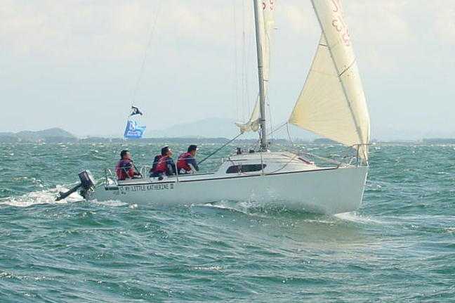 右が風が残っているのでそちらへいくが、とうとう風が切れてしまい、後ろからのブローに乗ったSUNSHOWERに抜かれてしまう。 これまでのキャサリンならこれで切れるところですが、今回は再度追い抜き、フィニッシュラインで風が有利に振れ、タックしないで済むという幸運にも恵まれSUNSHOWERと3分差でフィニッシュしました。
