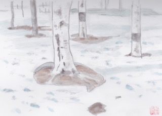 Ryuichiは、いつもゴンドラのソフト・パステルを使っています。パステルは、使いたいときにすぐに使える手軽さが気に入っています。Yokoは、固形水彩や水彩色鉛筆を使っています。ピグマ・ペンでしっかりした線描をした上に、淡彩を加えています。