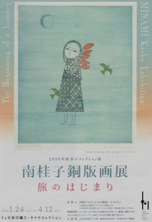 東京メトロ水天宮駅の3番出口を出てすぐの所にあるビルの1階にあるのが、ミュゼ浜口陽三です。ちなみに、浜口陽三は著名な版画家。 私が行った時には(2026年2月)、南桂子の銅版画展をやっていました。南桂子は、パリに住んでカラーの銅版画を作り続けた作家です。少女やお城などをモチーフとする幻想的な作品です。 主な展示作品は、”少女と花”、”2人の少女と猫”、”青い白”、”パリの屋根”など。 こじんまりとした、居心地の良いギャラリーでした。帰りには水天宮にお参りして行きました。 |