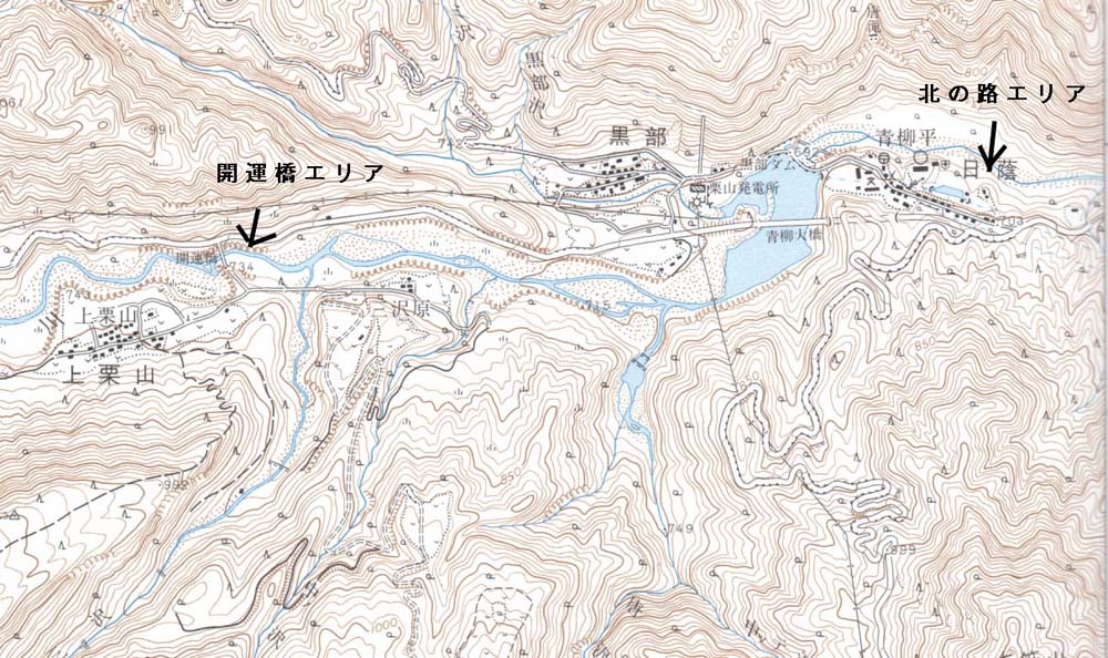 | アクセス | 東北道宇都宮ICで、宇都宮・日光道に乗り換え今市ICで一般道へ、鬼怒川温泉を経て川治温泉手前を左に折れ川俣方面 栗山村役場へ、役場手前のそば屋「北の路」より河原へおりるのが「北の路エリア」 ここより上流へ車で5分、ガソリンスタンド先の左手から河原へ降りる道を下った周辺に点在するのが「開運橋エリア」 |