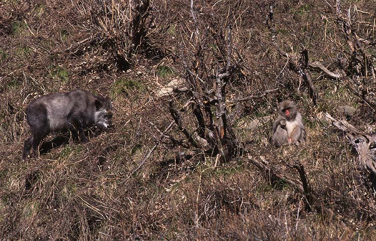 自然界ではこのような偶然の出会いが起こります。利害関係がないので、ある一定以上の距離が保てれば、お互いに干渉することはありません。(長野県山ノ内町) |