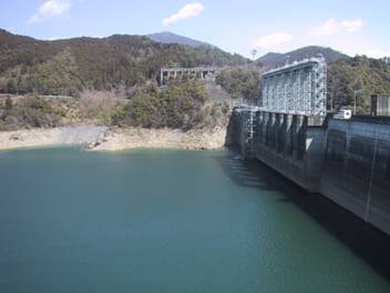 四国の水瓶とも言われるこの早明浦ダムだが、1994年の大渇水の時に、ダムの底に沈んだ役場が現われ一躍有名になり、それ以降毎年水不足になると、ニュースでその模様が取り上げられるダムだが、今のところ貯水量は十分のようで、当然役場の建物は見えなかった。 |