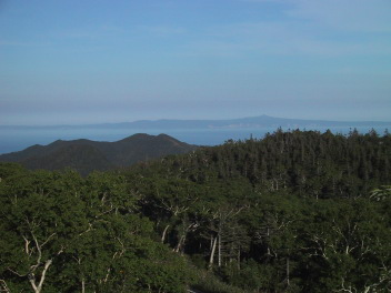 原生林のバックに、はるか国後島を望む