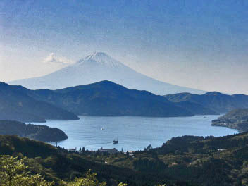 眼下に芦ノ湖が拡がり、後方には富士山が。 |