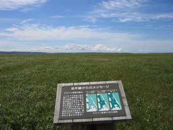 途中寄り道してサロベツ原生花園を歩く。見渡す限りの広大な原野が広がっている。