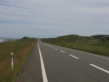 抜海に近づくと、回りの景色はだんだんと険しくなり、荒涼な原野の中、ガードレールも電信棒もない道をひたすら進む。 |