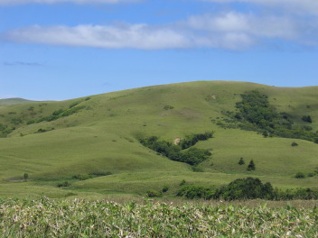しかし、道道を外れると、草原状の丘陵が続く、北国の風景が広がっている。 |