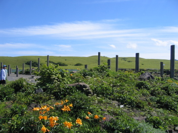 よく旅行のガイドブックなどに、一面に咲いたエゾカンゾウの花をバックに、利尻富士がそびえ立つといった写真がよく掲載されているが、時期が悪いせいか、残念ながら花はほとんど咲いていなかった。