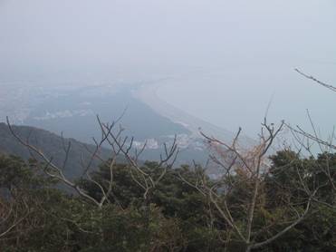 頂上からは、東に日高平野、南に煙樹ヶ浜、西に比井崎海岸と紀伊水道が一望でき、遠く四国・大鳴門橋や、高野連山を望むことができるらしいが、あいにく曇っていて、展望はいまいちだった。 |