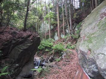 今はけもの道のようなこの道だが、戦国時代には大軍が通るほどの、立派な街道だったらしい。 |