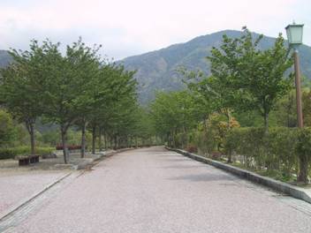 橋の手前の川沿いにSQの和らぎの道があった。