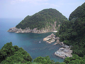 白南風トンネルを抜けると前方に美しいリアス式海岸の風景が拡がる。
