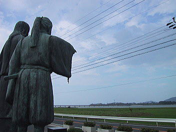 以前Qラリーでも来たことがある所だが、森鴎外の山椒太夫の舞台となった場所でもあり、駐車場の一角に安寿と厨子王の像が建てられ、二人の母が連れ去られた佐渡島を思ってか、厨子王の像は日本海の方角を指している。 |