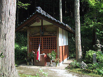 由良川を渡り、山中を少し入ったところにOPT8安寿姫塚があった。山庄太夫のもとから逃げ出した安寿姫は、疲労と空腹に絶え切れず、かつえ坂の中山と下東の境で安寿は息絶え、村人によってこの地に葬られたと伝えられている。