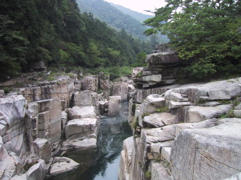 途中にあった寝覚の床を見物する。木曽八景の一つ、寝覚の床は、巨大な花崗岩が木曽川の激流に削られてできた、まさに大自然が作り出した巨大な彫刻といった感じの奇勝で、またここで浦島太郎が玉手箱を開けたという伝説も残っている。