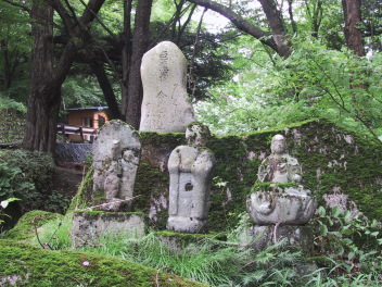 峠には石地蔵や供養塔が残り、またお助け小屋が復元されている。 |