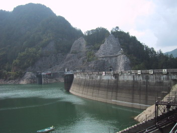 高根第1ダムは提高が133mもあるアーチ型ダムで、山間に巨大なコンクリートが壁のようにそびえ立っていた。
