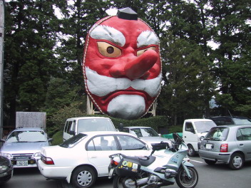 この天狗面は、たて8m、よこ6m、鼻の高さ4mもある日本一大きい天狗面らしいが、なんでこの町にこの面があるのか良くわからない。 |