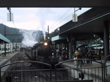 駅の構内を覗くと、ちょうどホームにSLが停車中だった。