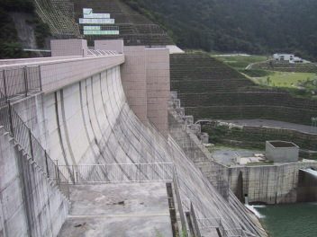 長島ダムは堤高109m、堤頂長308m、堤体積861千m3の巨大な重力式コンクリートダムで、洪水調節、流水の正常な機能の維持、灌漑及び水道用水の補給を目的として27年もの歳月をかけて建設されたというが、わざわざアプト式の鉄道を作ってまで、本当にダムが必要かどうか疑問に思った。