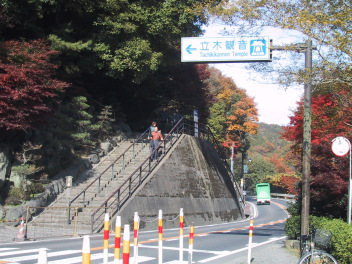 今回は距離が短いので、ついでに立木観音にお参りしようと思って石段を登る。 |