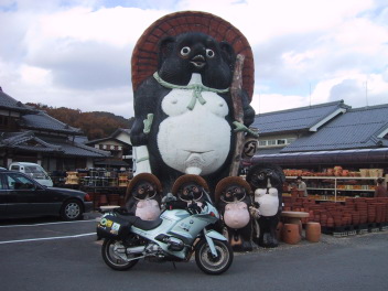 信楽焼で有名な信楽の国道沿いには、陶器屋が並んでいて、狸の置物の間を抜けてゆく。