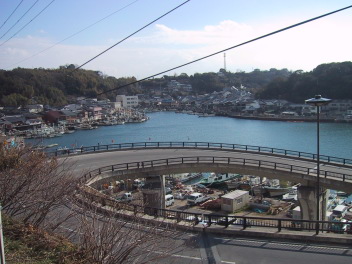 国道250号はりまシーサイドロードを走る。七曲と呼ばれるコーナーの連続する道で、ところどころで前方に播磨灘の景色が広がる。冬場で日が低いせいか、太陽の光が反射して海がまぶしい。